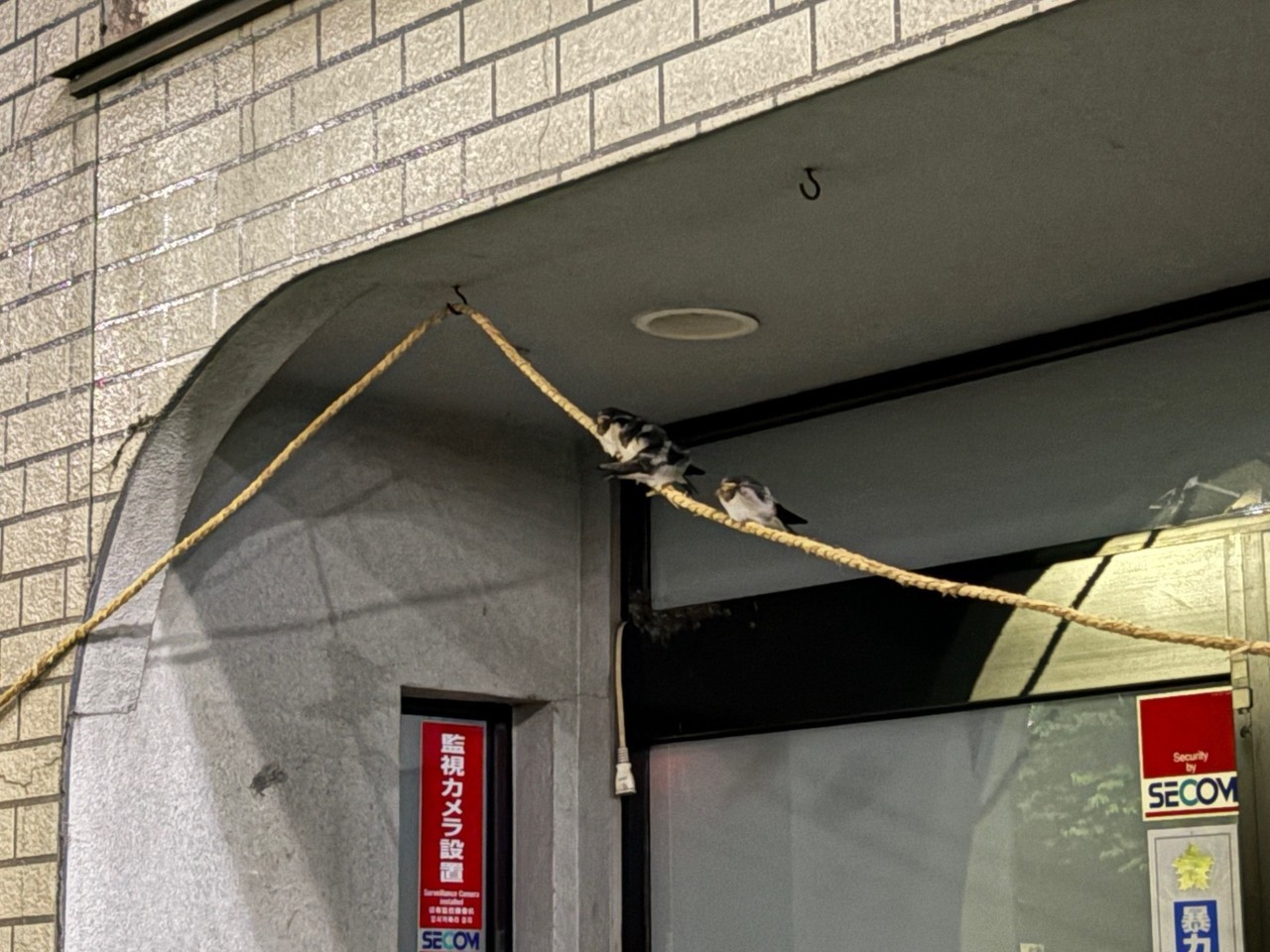 みこしまくりに際するしめ縄を張りましたが、そのうえに来訪者が……。
