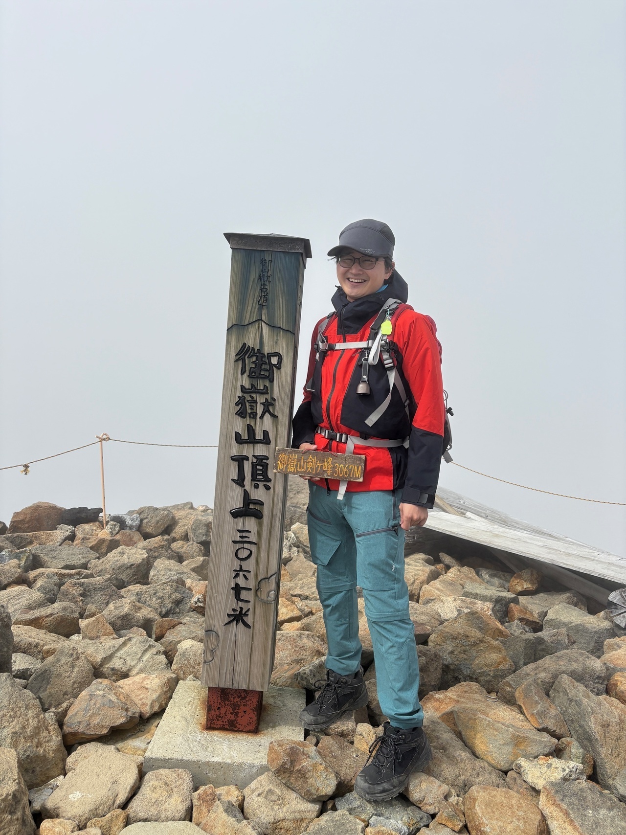 山頂を目指しましたが、道中はとてもガスが多く、最終的には前が何も見えず…。